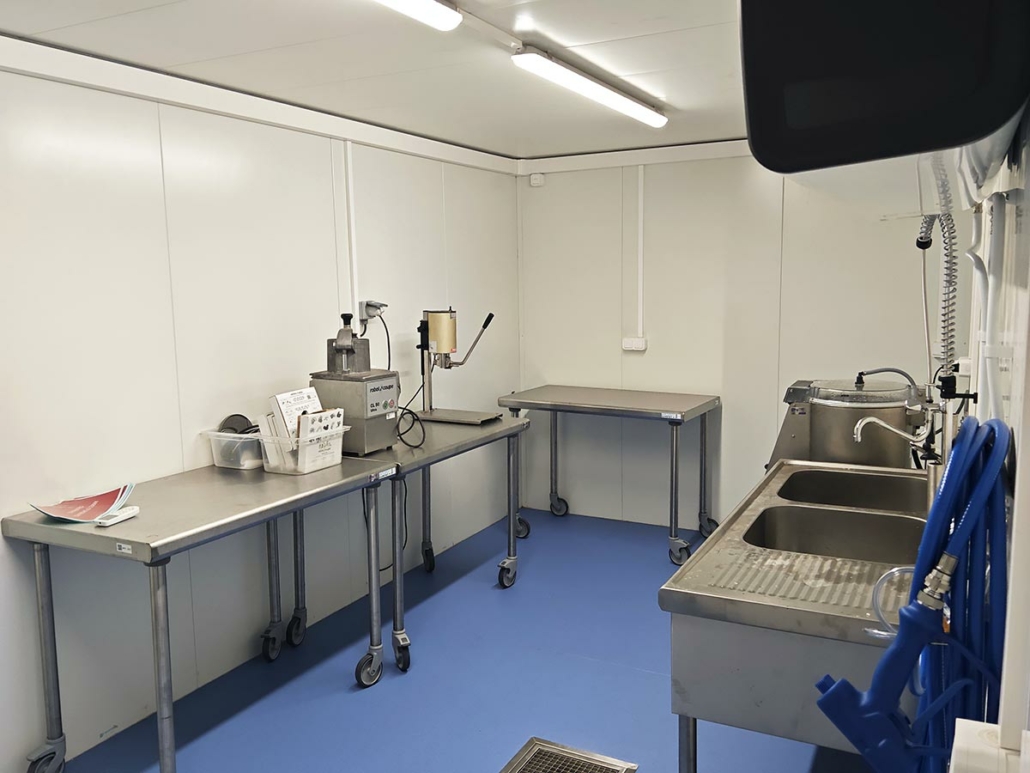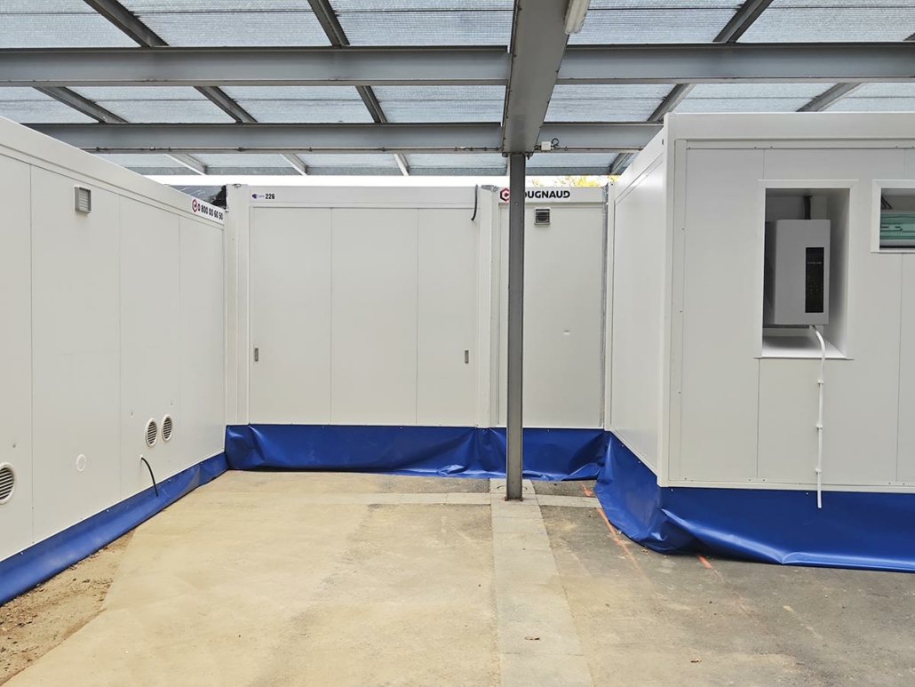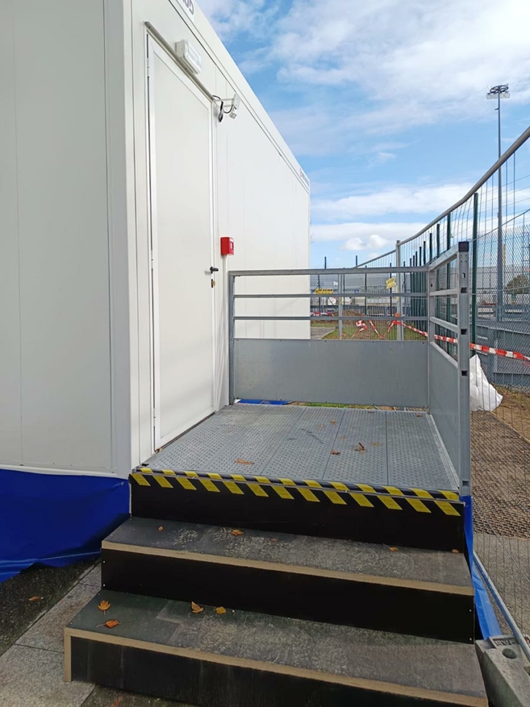 Rampes d’accès sous 2 SAS de liaison hors d’air hors d’eau (pour accès self et pré tri) + emmarchements normés pour accès agents de cuisine + quai rampe de livraison